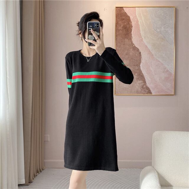 心地よさとスタイルを兼ね備えた、**秋冬レディース長袖ニットショートドレス**です!