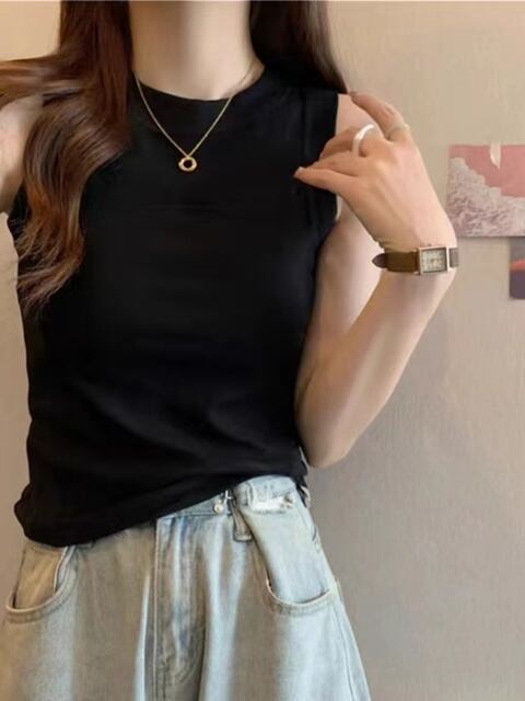 心地よさとトレンド感を兼ね備えた、**モダール 2025年シーズン新作 ワイドショルダーベスト スリング レディース スリムフィット ノースリーブ ラウンドネック Tシャツ レディース トップス**です!