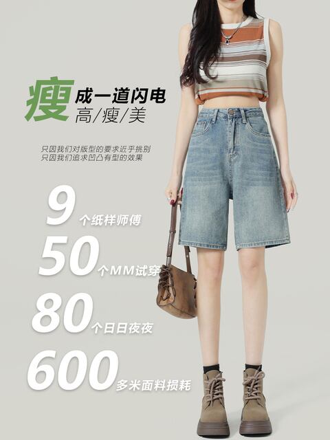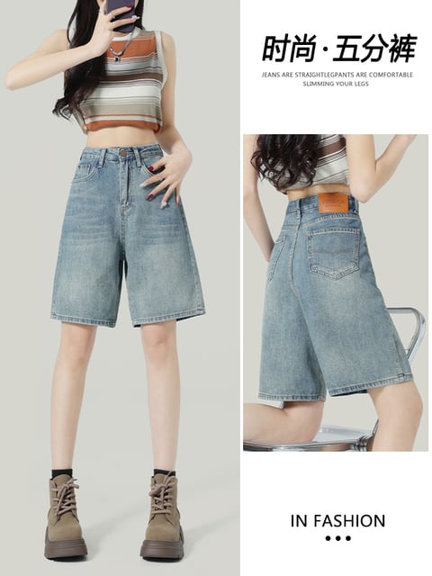 心地よさとスタイルを兼ね備えた、**ラ・シャペルハイウエスト5点デニムショートパンツレディース2025年夏新作ゆったりストレート小5点パンツ**です!