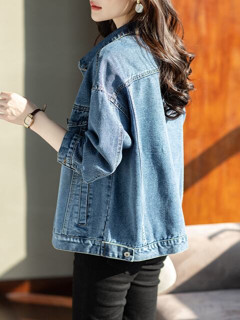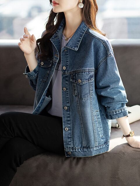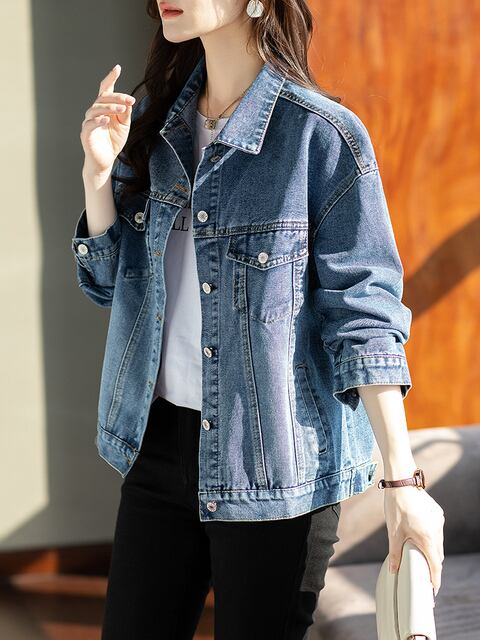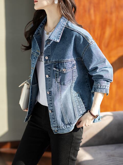 心地よさとスタイルを兼ね備えた、**レトロな香港スタイルのファッションデニムジャケット、女性用、2025年春、新作、オールマッチ、スリムジャケット、スタイリッシュなショートトップ**です!