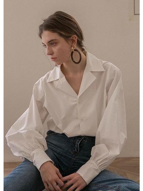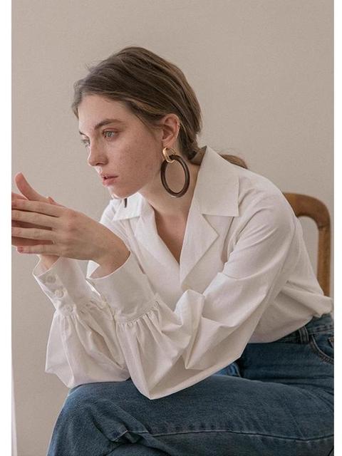 フレンチシックな気質のVネックホワイトシャツレディース早春新作長袖通勤プロフェッショナルシャツランタンスリーブトップ