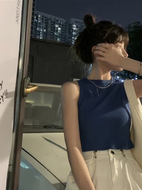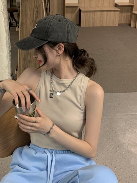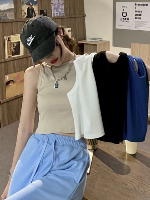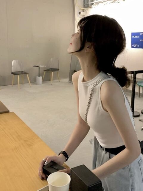 サスペンダーベストレディース夏2025新しいアメリカンスタイルの白いアウターウェアノースリーブTシャツショートハイエンドトップ