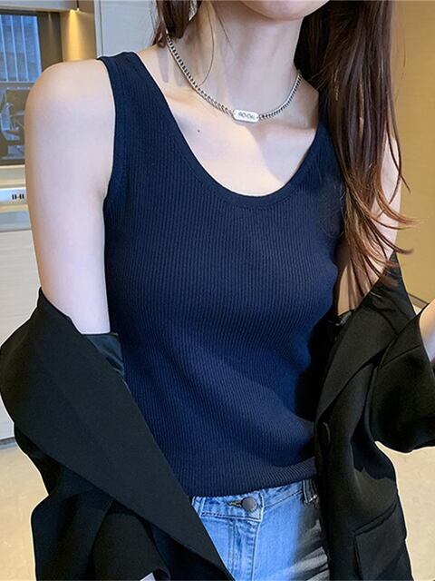 ニットキャミソールレディースインナーウェア2025新作セクシーアウターウェアノースリーブトップススリムサマースーツボトムスシャツ