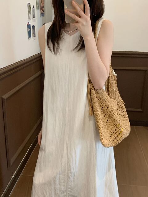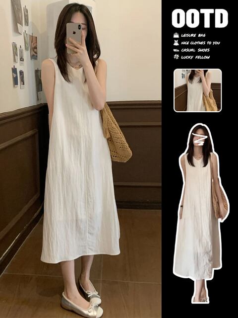 心地よさとスタイルを兼ね備えた、**女の子のための小さな白いキャミソールドレス2025年夏の新しいホットスタイルは、とても素敵でユニークな美しいロングスカートです!**