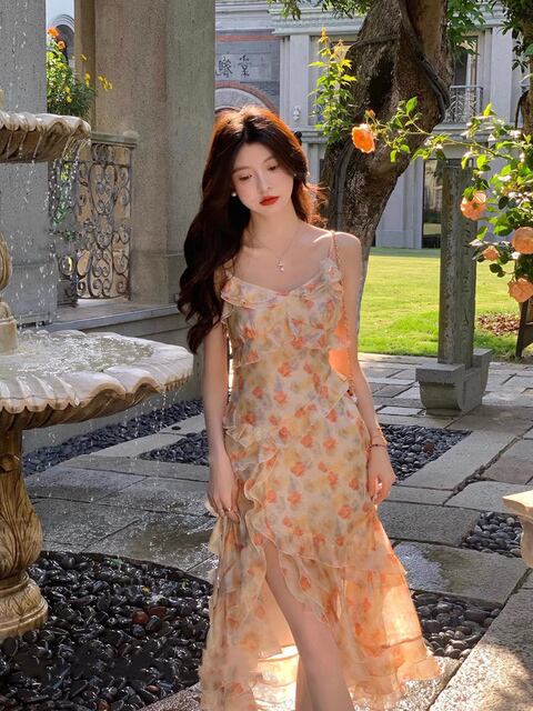 心地よさとスタイルを兼ね備えた、**シックで美しい花柄のサスペンダードレス(夏用)と、イレギュラーウエストのシフォンベストスカート、フレンチティードレスは、2025年夏の新作ホットスタイルの魅力的なレディースドレスです!**
