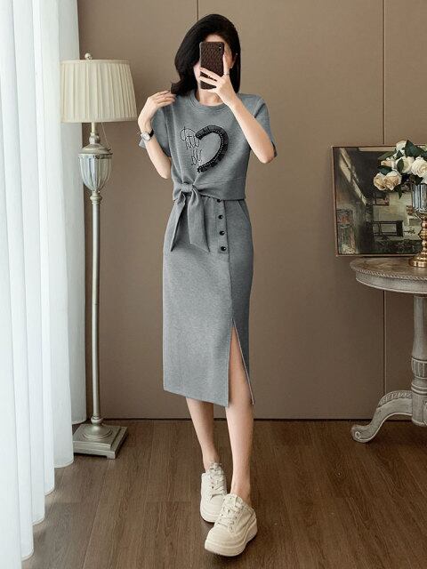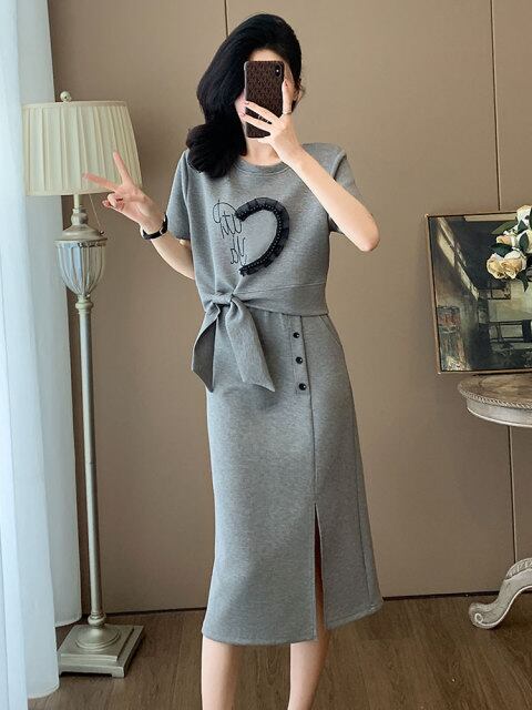 シックなデザインのカジュアルスポーツスーツレディース夏2025新しいファッション年齢を減らすトップスカートツーピーススーツ