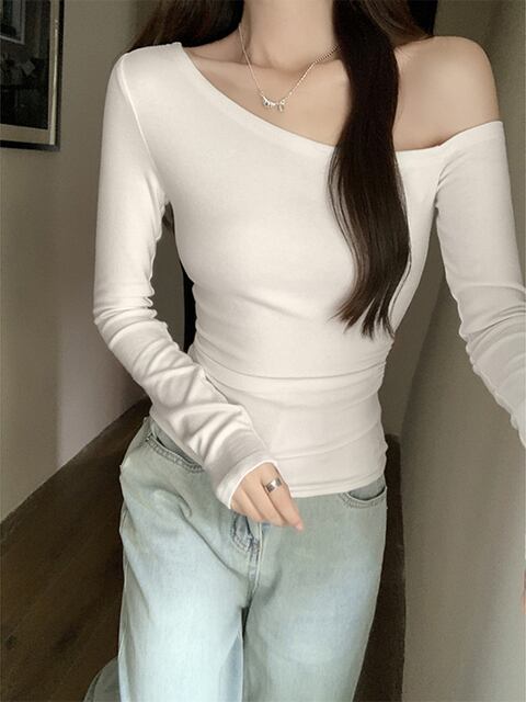 心地よさとスタイルを兼ね備えた、**甘くてスパイシーなシックな斜め肩のセクシーな長袖Tシャツは、2025年初秋の新作ホットスタイルの魅力的なレディースファッションアイテムです!**