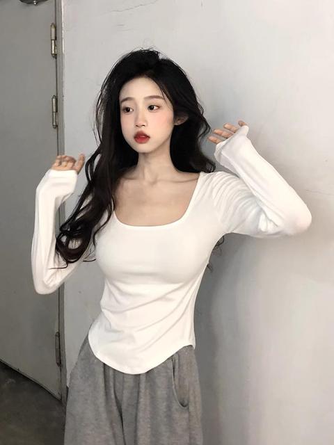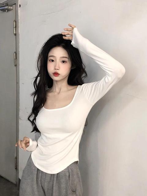 2025年秋新作レディース秋スクエアネック長袖Tシャツボトムシャツ韓国初秋着トップススモールシャツトレンド