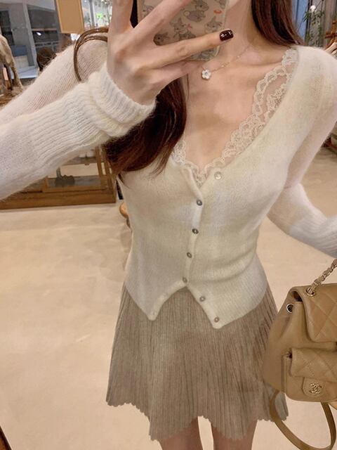 心地よさとスタイルを兼ね備えた、**小さな香りのスタイルのレースニットボトムシャツ レディース Vネックインナーウェア 秋の純粋な欲望スリムセーター優しいショートトップは、2025年秋のトレンドアイテムとして必見の一品です!**