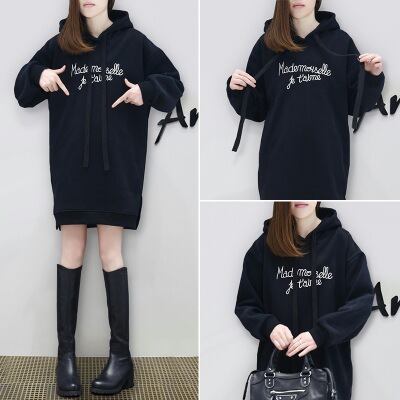 トレンドの秋冬ルーズフリース裏地スウェットシャツ、プルオーバースタイル、ミドル丈、刺繍入りレタースウェットシャツドレス、トレンドのレディーススウェットシャツ/フリースセーター