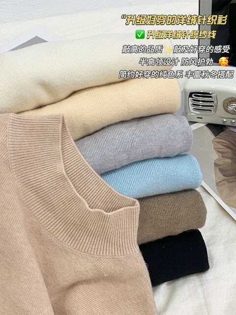 レディースベースレイヤートップ、2025年初秋の新スタイル、タートルネックセーター、秋冬用ウールニットトップ。