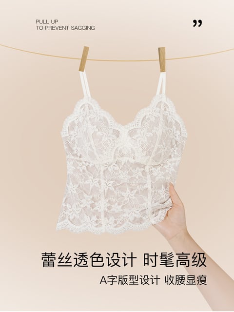ブラパッド付きのレディース保温ベスト下着、2025年秋冬新作フレンチセクシーレースインナーキャミソールベースレイヤー。