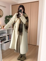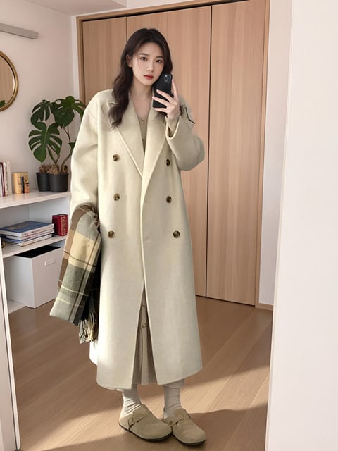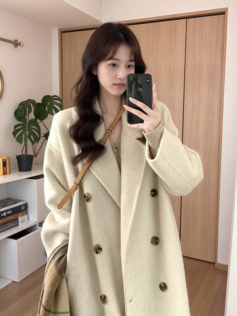 厚手の生地がしっかりとしたシルエットを保ち、寒い日でも安心して着用できるのが魅力です。デニムやスカート、ドレスとの相性も抜群で、普段使いや特別なシーンまで幅広く活躍します。このエレガントなウールコートを身につけて、あなたの魅力を際立ててください!