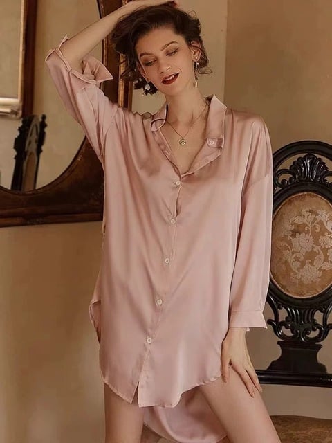 心地よさとスタイルを兼ね備えた、**ビクトリアのセクシーで無邪気なスタイルのナイトガウン、ゆったりとしたボーイフレンドスタイルの白いシャツのアイスシルクのパジャマの女性のホームウェアセットは、2025年新作の必須アイテムです!**