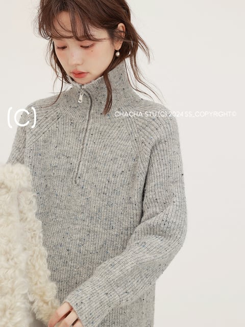 フレンチレトロニットワンピース レディース 秋冬 グレー ハイネック インナーワンピース セーターワンピース