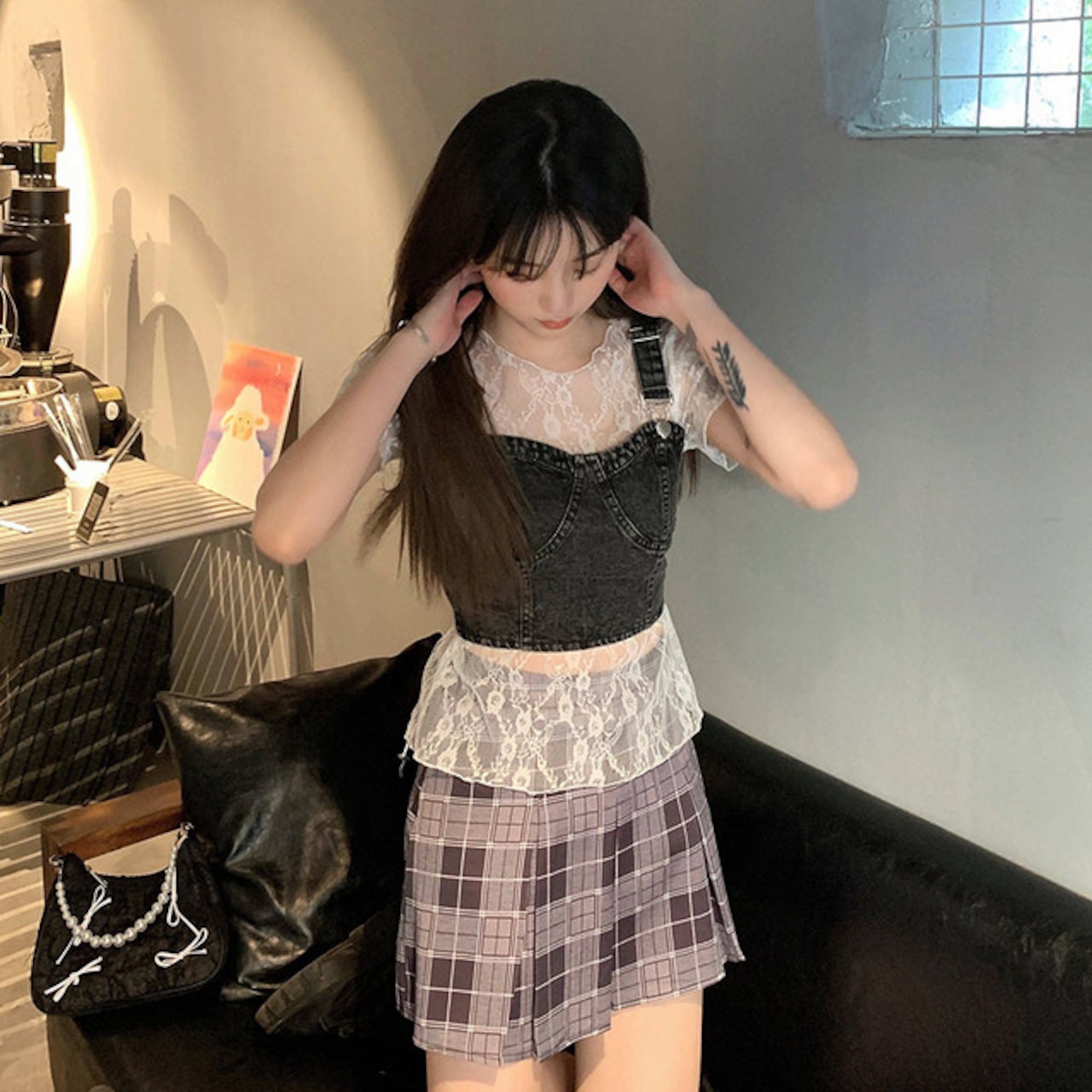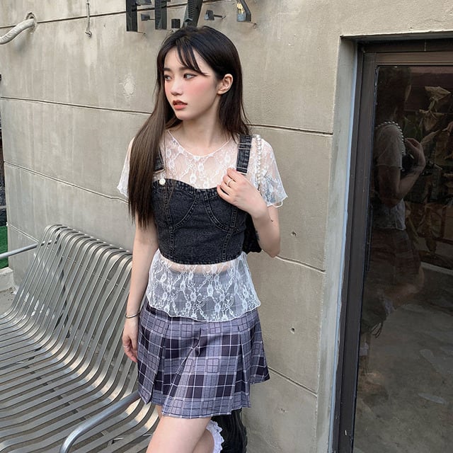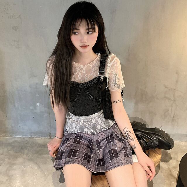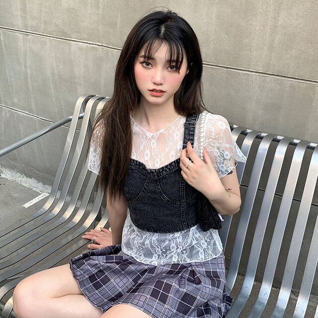 このトップは、高品質のシフォン素材を使用しており、肌に優しく、軽やかな着心地を提供します。ショート丈とレースインナーの組み合わせが特徴で、クールでありながらも女性らしさを引き立てつつ、春夏の様々なシーンで活躍します。シンプルでありながらも個性的なスタイルは、カジュアルな日常使いから特別なお出かけまで、自信を持って着用できるアイテムです。