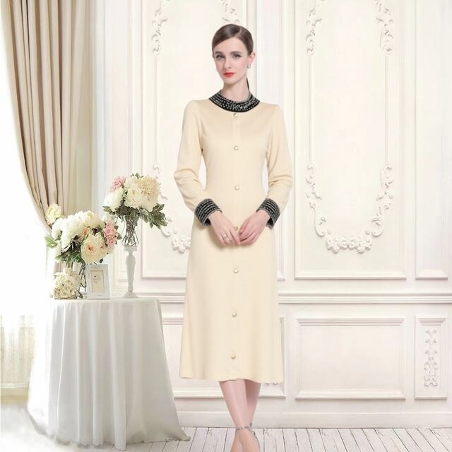 このセータードレスは、高品質のニット素材を使用しており、柔らかな着心地と優れた伸縮性を提供します。スリムフィットのデザインが特徴で、身体のラインを美しく引き立てながら、秋冬のスタイリングを豊かに彩ります。シンプルでありながらもエレガントなスタイルは、デイリーユースから特別なお出かけまで、自信を持って着用できるアイテムです。