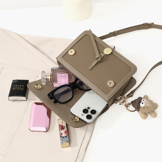 このバッグは、高品質な本革を使用し、クロスボディバッグやショルダーバッグとして多用途に活躍します。小さなスクエアデザインが特徴で、スマートな見た目と共に、必要なアイテムをしっかり収納できる機能性も兼ね備えています。軽やかな夏のコーディネートにぴったりで、さまざまなシーンで使いやすいファッションアイテムです。