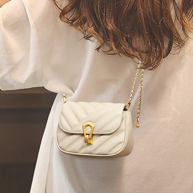 このバッグは、高品質な本革を使用しており、華やかなチェーンデザインが特徴です。エレガントなシルエットが女性らしさを引き立て、普段使いから特別なシーンまで幅広く活躍するファッションアイテムとなっています。コンパクトながらも収納力があり、必要なアイテムをしっかり収納できる使いやすさも魅力です。